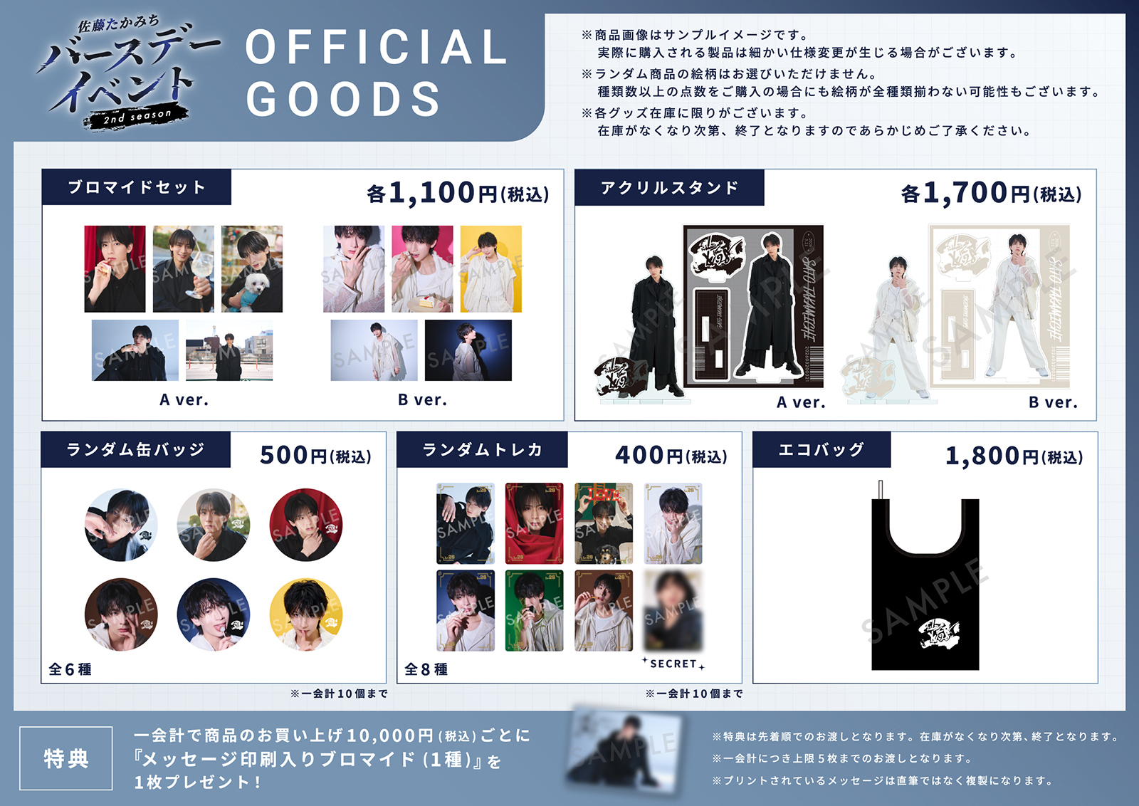 一会計で商品のお買い上げ10,000円(税込)ごとに「メッセージ印刷入りブロマイド(1種)」を1枚プレゼント!